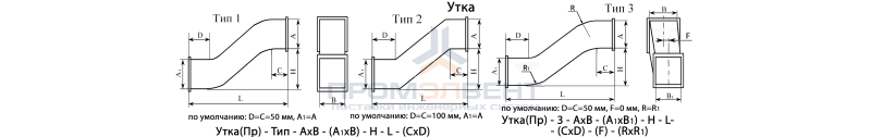 Утки предназначены для изменения уровня воздуховодов. С помощью уток при прокладке системы воздуховодов обходят балки, выступы, препятствия на пути системы.